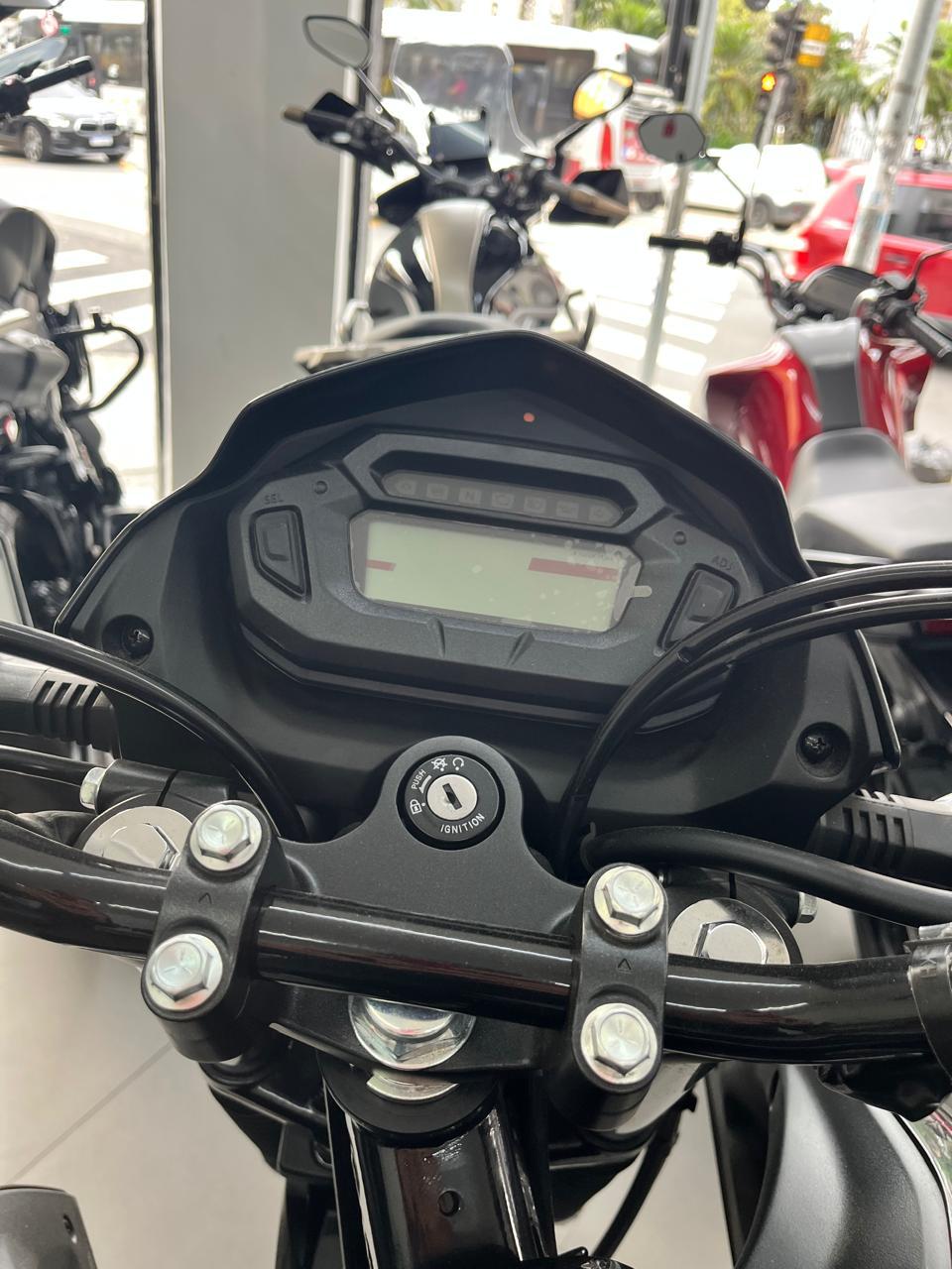Painel: Totalmente digital em LCD, com velocímetro, RPM, indicador de marcha, hodômetros e alerta de voltagem da bateria.