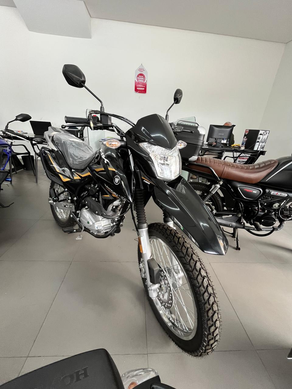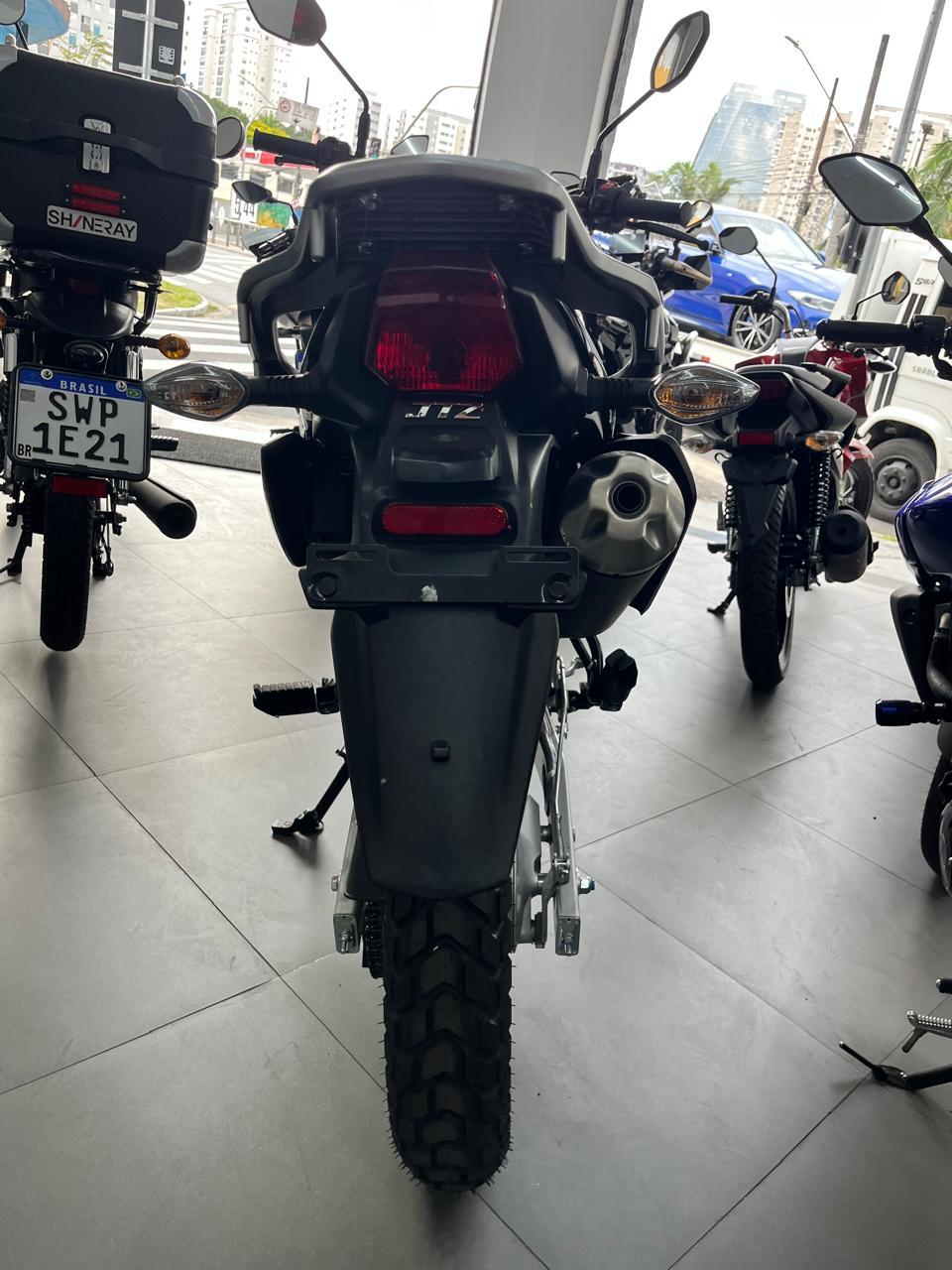 Design: Visual trail com linhas agressivas, para-lama dianteiro alto e escapamento elevado.